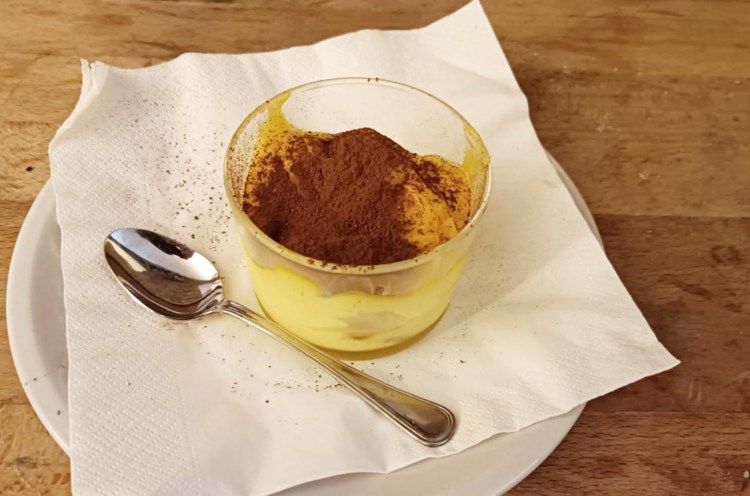 Uova, mascarpone, savoiardi, caffè, cacao amaro.